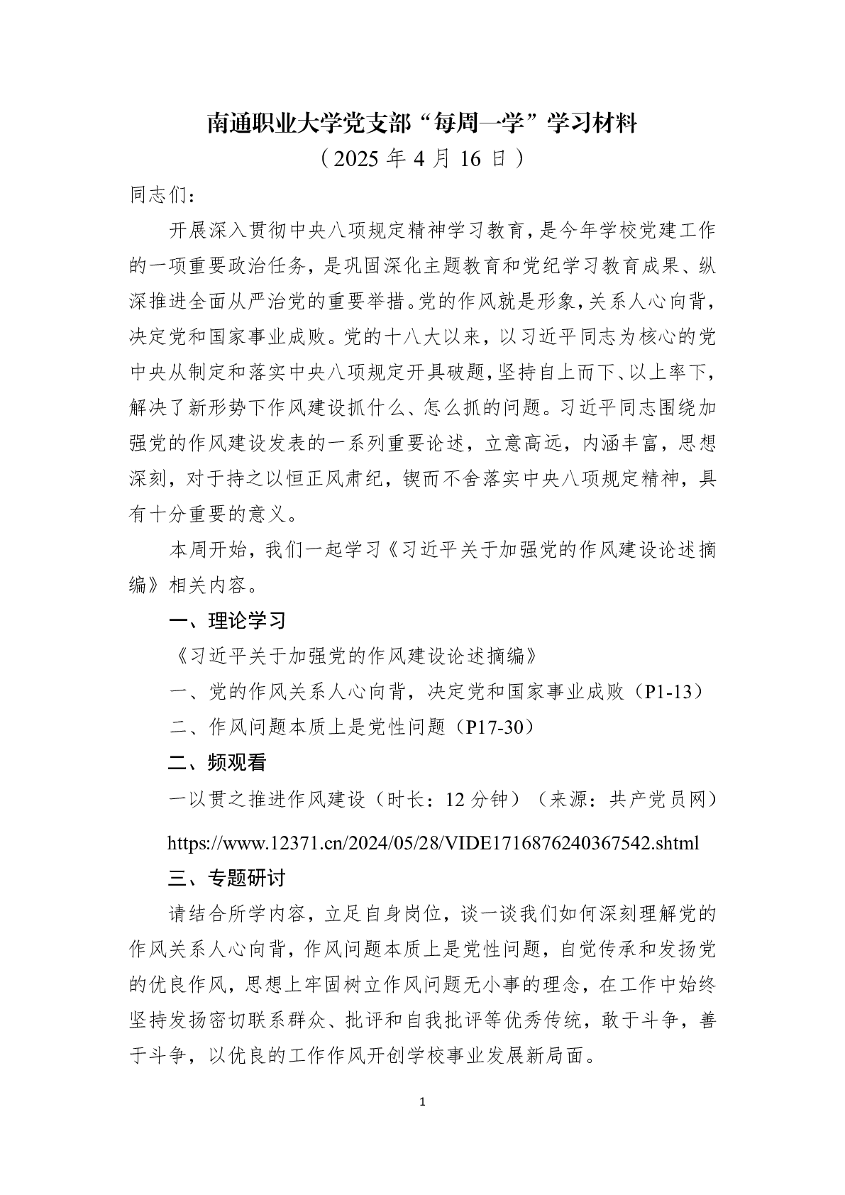 每周一学|第九周学习材料——教工第三党支部