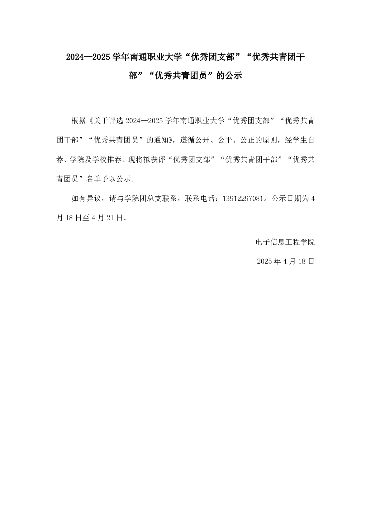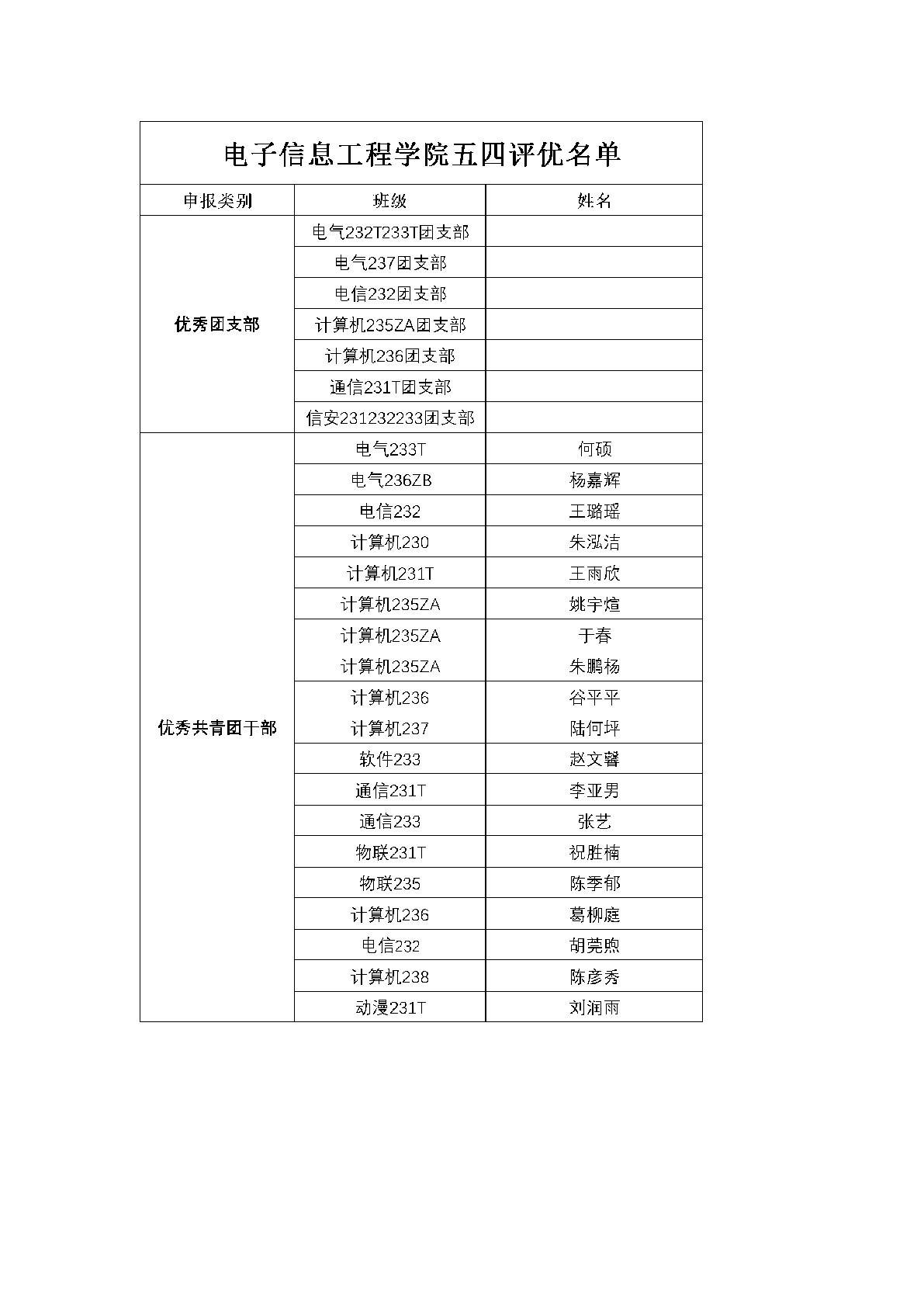 2024—2025学年在线买世界杯平台“优秀团支部”“优秀共青团干部”“优秀共青团员”的公示