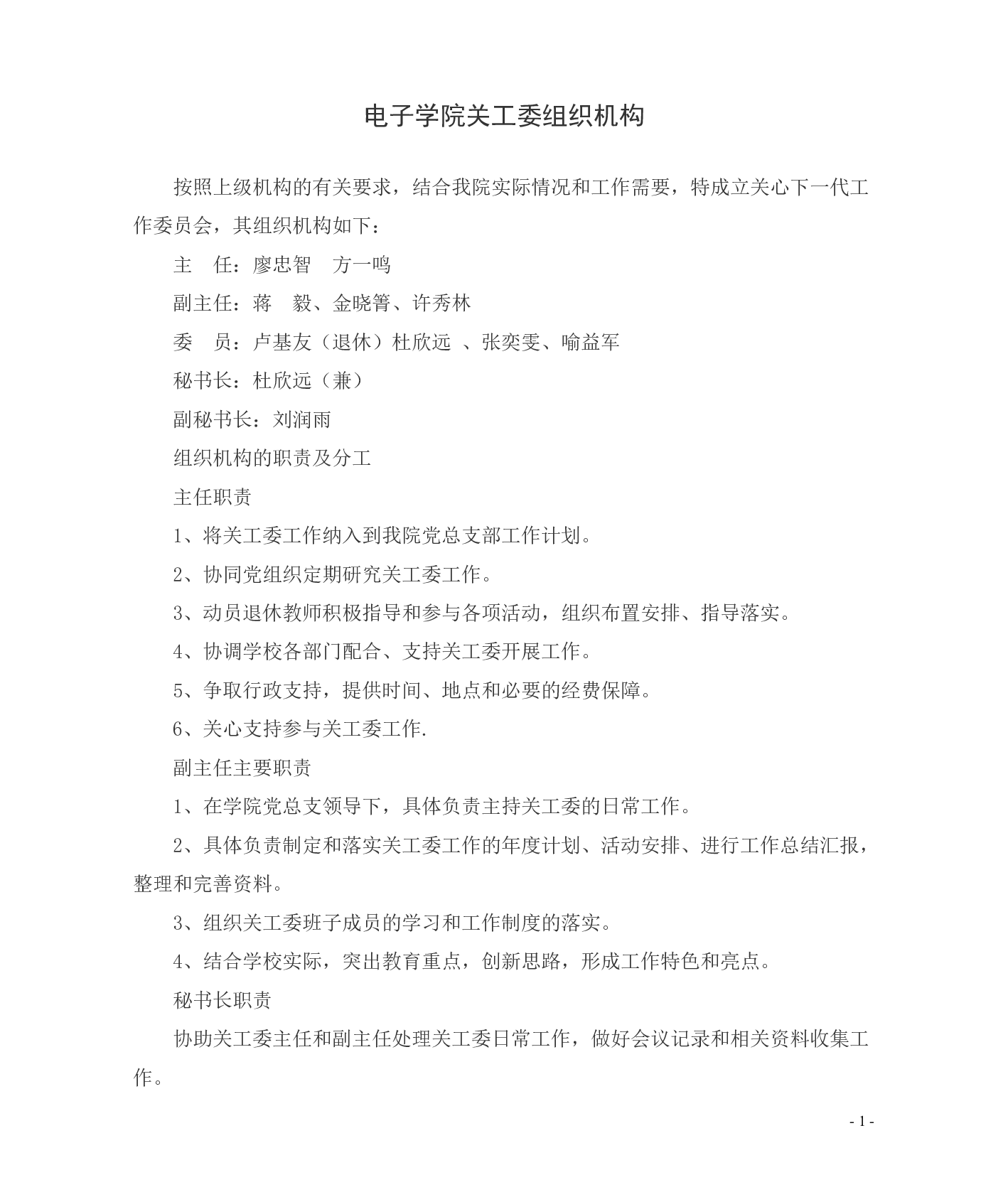 电子学院关工委组织机构