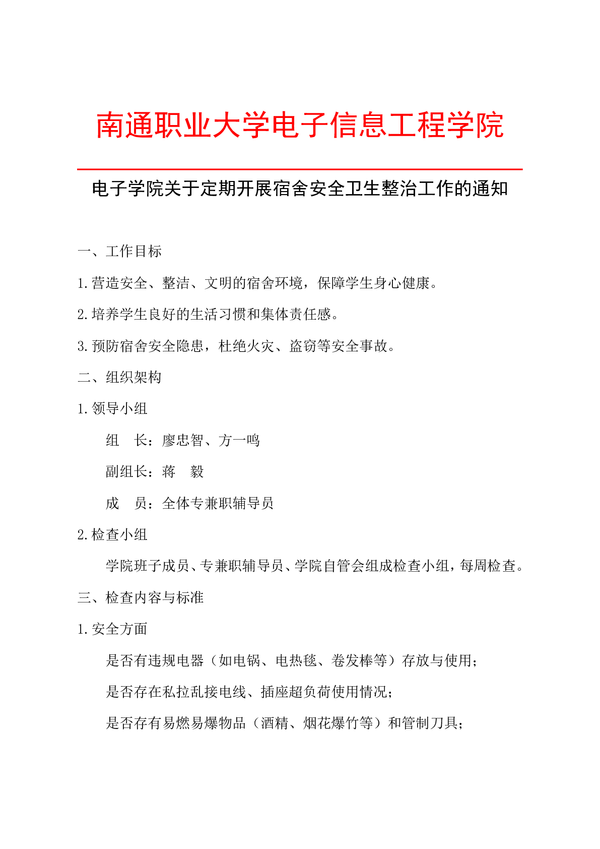电子学院关于定期开展宿舍安全卫生整治工作的通知
